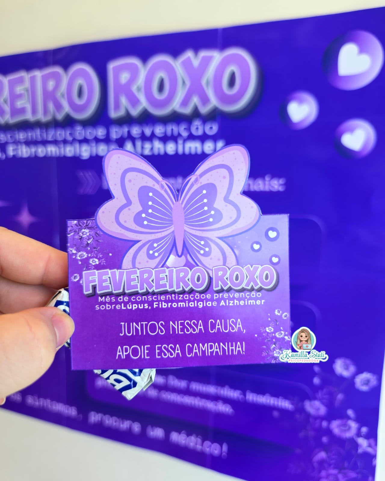 Painel fevereiro roxo + lembrancinha